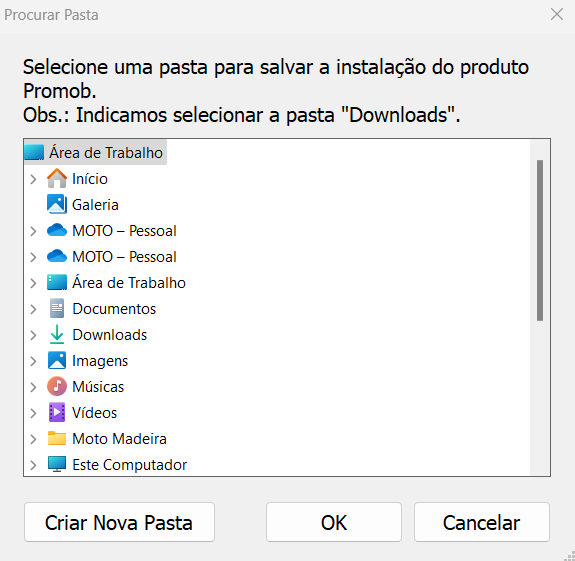 Escolha o local da instalação do Promob e clique em avançar novamente: