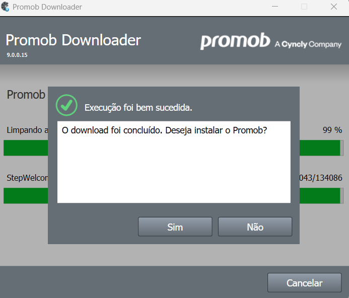 Com o download completo clique em Sim para instalar o Promob Studio Moto Madeiras