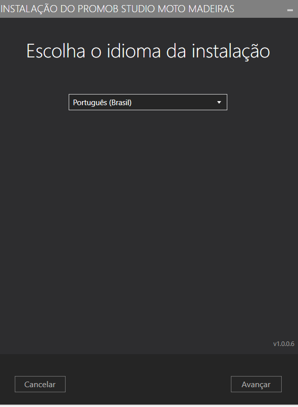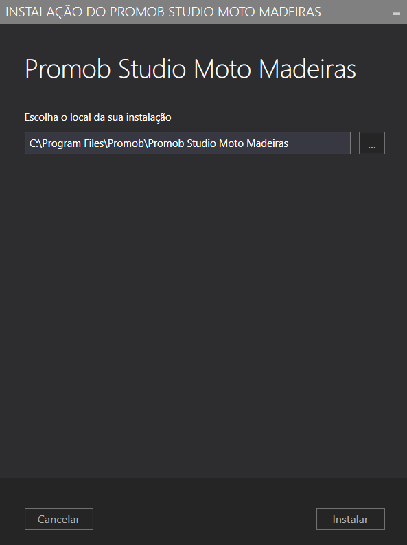 clique em Instalar para iniciar a instalação do Promob Studio Moto Madeiras: